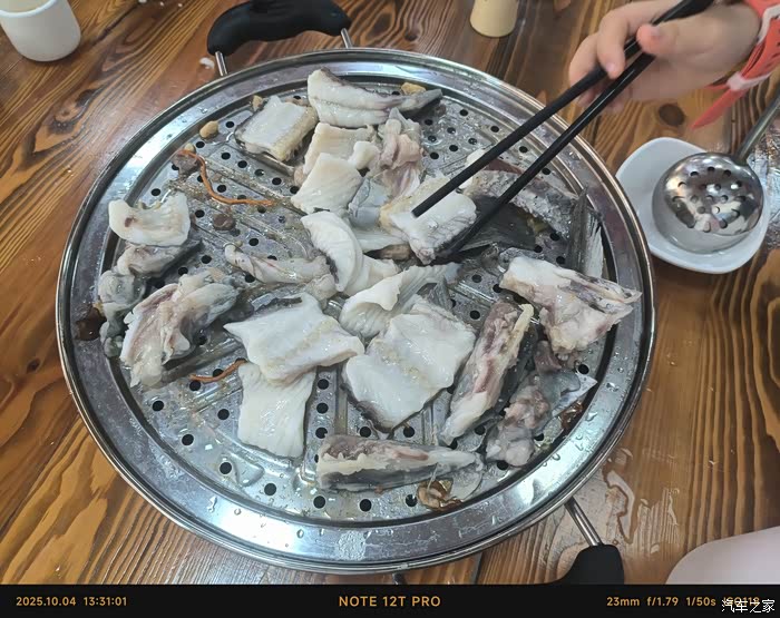 登顶的喜悦还未消散,饥肠已开始辘辘。我们避开景区拥挤的餐厅,驱车6公里来到清远文旅推荐的桑拿鸡·桑拿牛·桑拿鱼尝尝鲜。