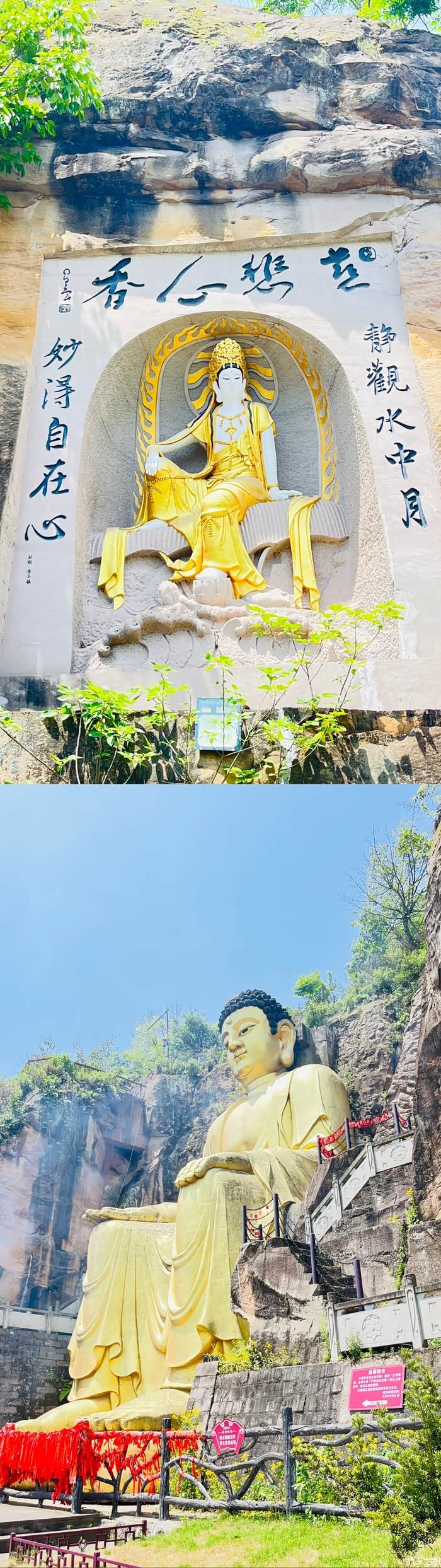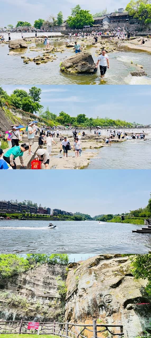 走过大荣桥,我们靠右绕行前往荣昌大佛。站在大佛前,俯瞰大荣桥下游的白银滩,景色美不胜收。河边风光旖旎,绿树成荫,花草繁盛,与瀑布、河流构成了一幅如诗如画的美景,让人流连忘返。