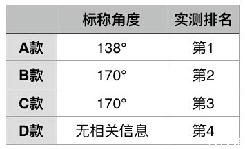 很明显,商家标称角度跟实测结果有严重冲突。