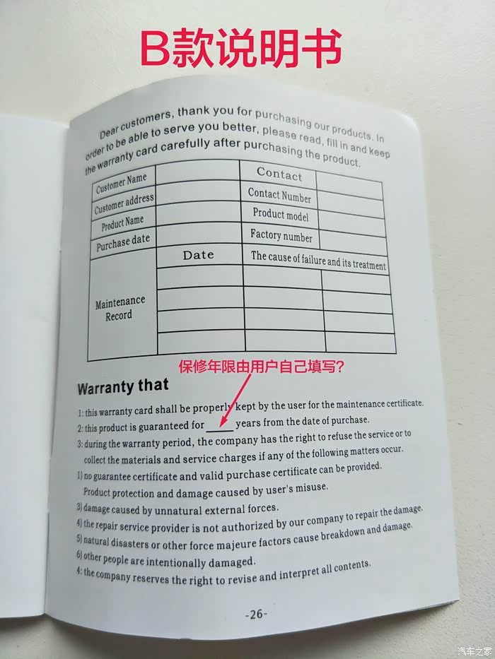 B款说明书封面。