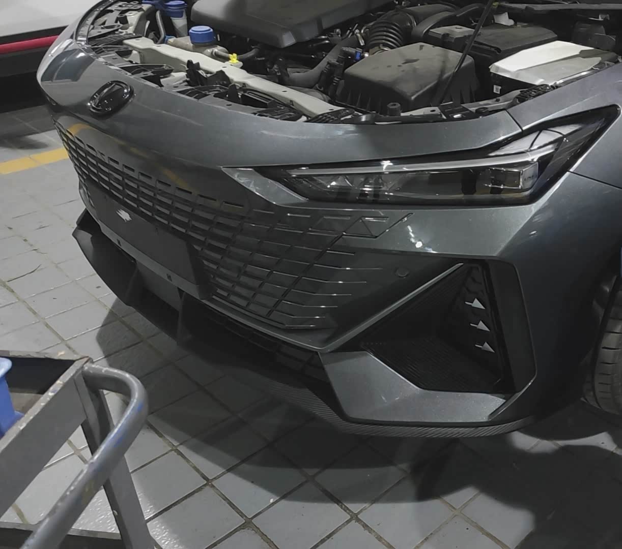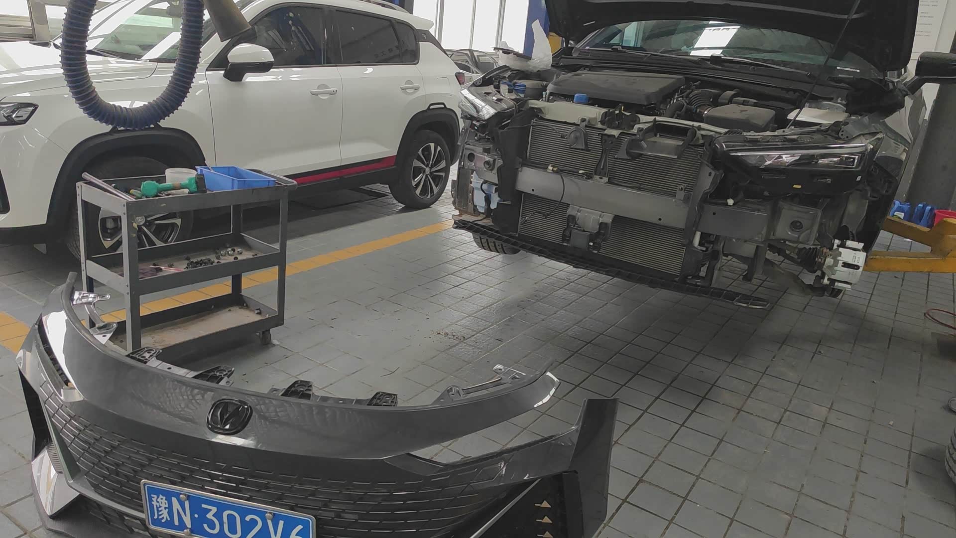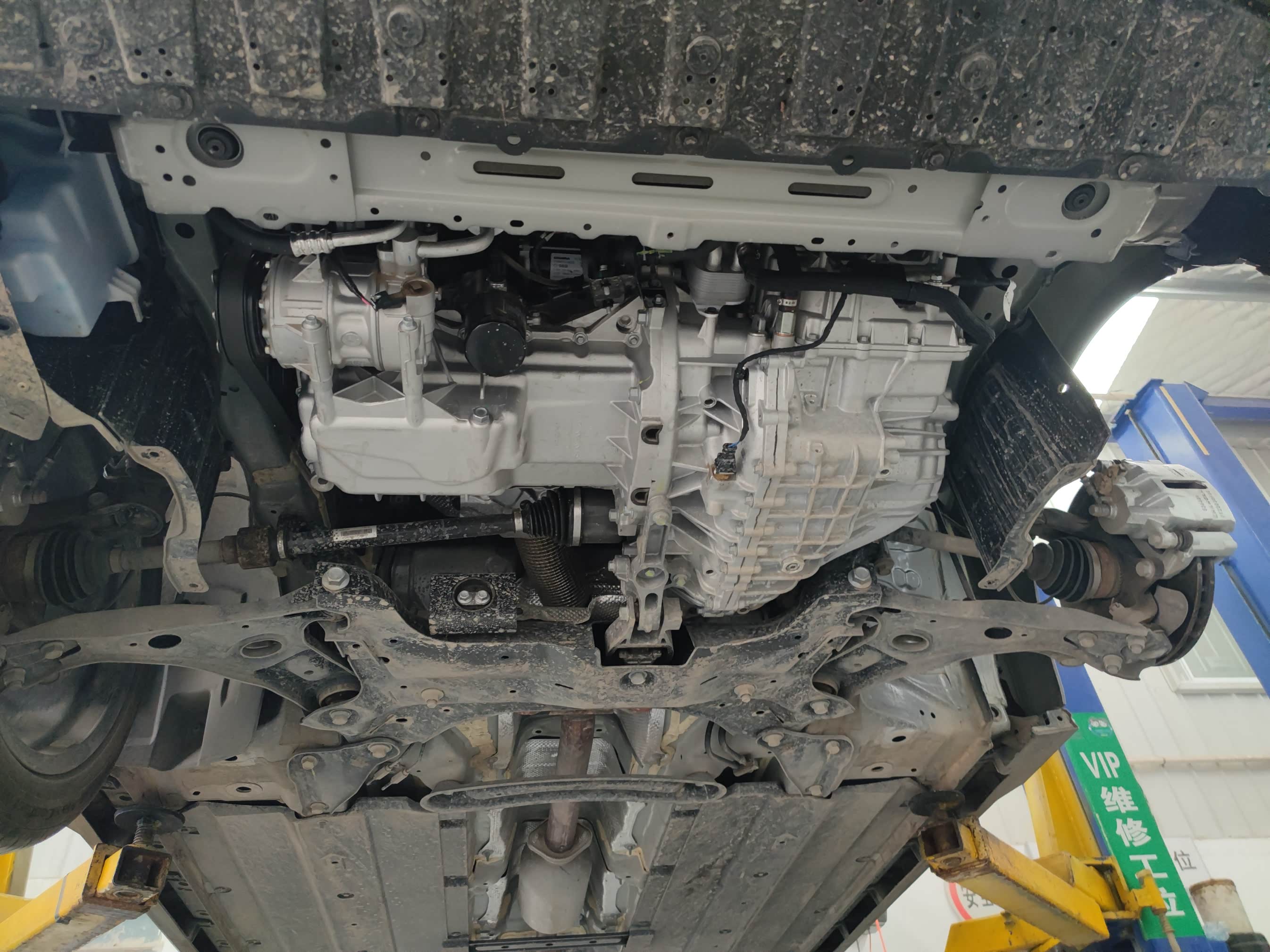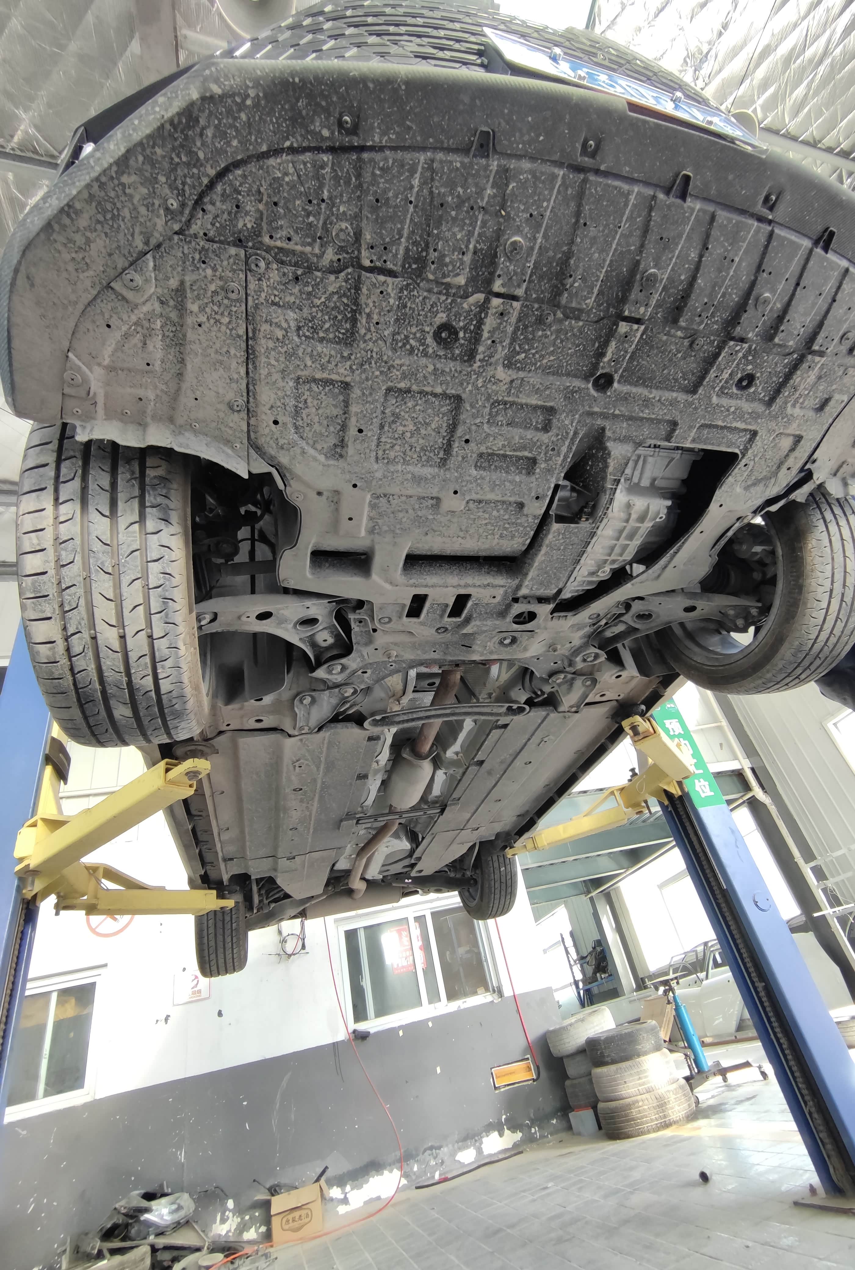 经过几天的等待,配件到货,我前往售后店进行维修更换。师傅用起重机把车子升至高处,先是使用专用扳手拆卸底盘中间护板,紧接着拆掉前叶子板内衬,最后把整个前保险杠拆掉。我发现univ的前保险杠设计非常独特,并且很多地方稍不小心就会造成损坏。但是师傅的技术还是很到位的,熟练的完成拆装过程,可见对长安univ车型结构的了解颇深。