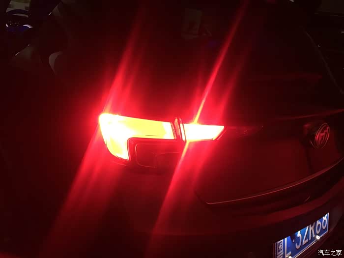 后尾灯组效果(刹车未踩下,如果踩下的话刹车灯会高亮),车身尾灯兼刹车灯是欧司朗P21红光LED刹车灯,130块一对。尾门灯是欧司朗红光T10头LED灯,70块一对。