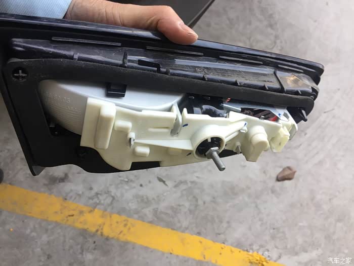 尾门灯总成背面,三个卡扣,无需工具10秒可以拆解。