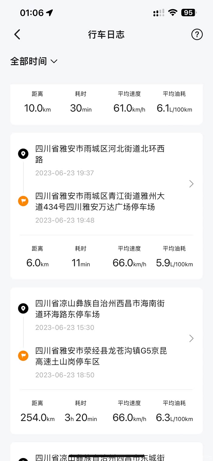 油耗方面,由于这段路大部分都是限速 100 110,所以不能顶着 120 开,100 左右速度的话,这样带来的好处是油耗非常 nice,6 个油左右就搞定,直接 80%左右油从西昌赶回成都哈哈哈。
