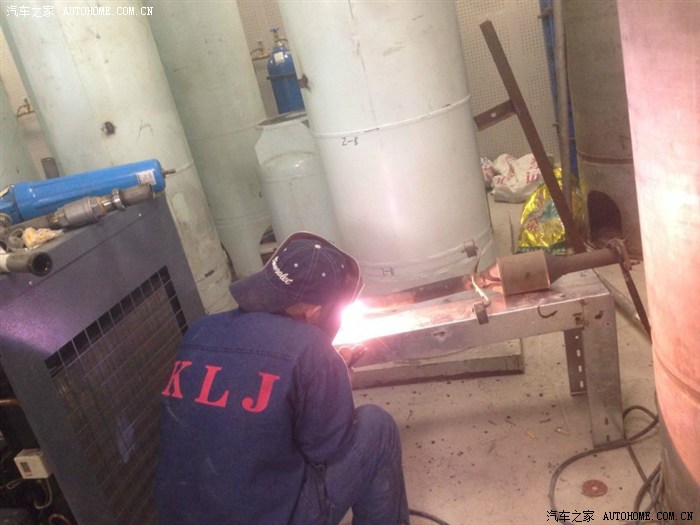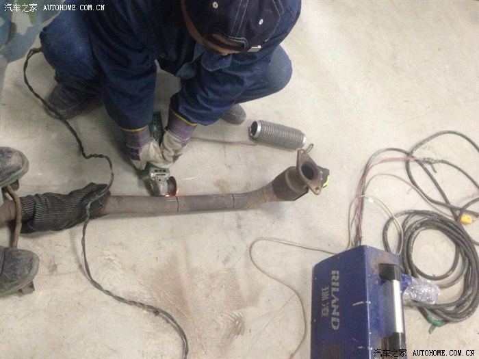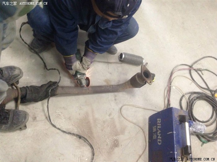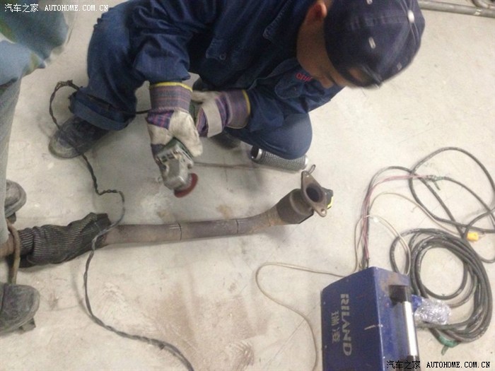 这是朋友的单位专门焊白钢设备的师傅,很认真的帮我截断排气管