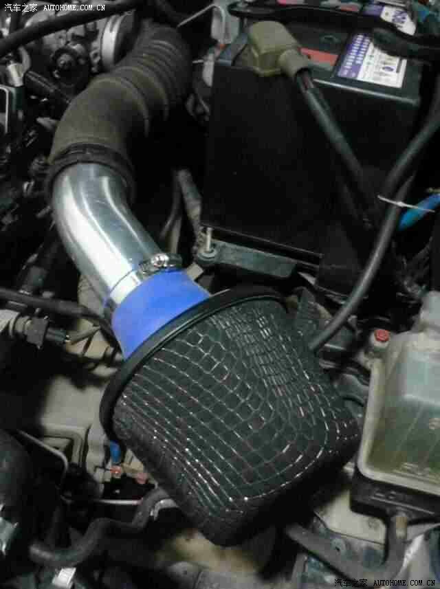 涡流进气的特写,开始时我是直接把前面的软管都拆掉了,后来急加速的时候,由于管太短,里面的空气少,急加速很容易产生真空,发动机爆震,也就是起速要顿一下,后来请教了群里的朋友,把前面的软管加上,问题解决
