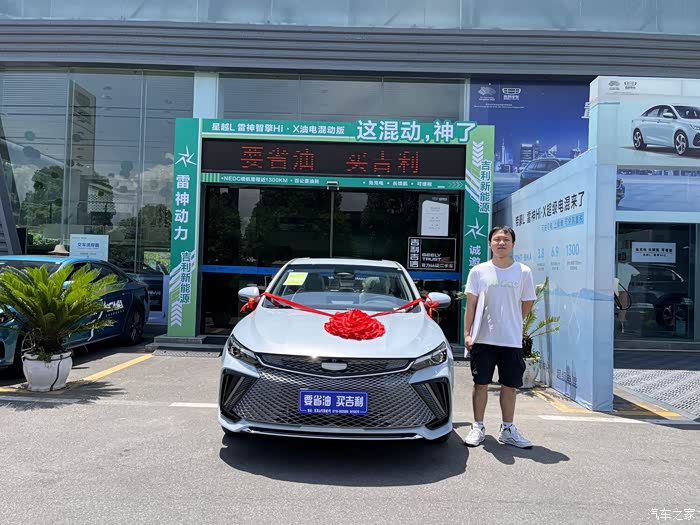 刚开始,我在关注新能源,汽车比亚迪品牌都有去看过,来到吉利销售给我推荐了这款雷神帝豪LHip,当时就是被他的动力吸引了 ,动力实在是太强了,发动机功率133千瓦,扭矩290牛米,还有电动机功率100K M扭距320 N M。系统综合功率233千瓦,扭距616米,有316匹马力。还有他的一个1300Km超长的续航。只需要加一箱油综合续航1300K M。亏电油耗低至3.8L,百公里提速仅6.9S。因动力非常强劲,所以在起速起步的时候有一点往前冲或者是轮子有一点咆。总的还是比较满意。