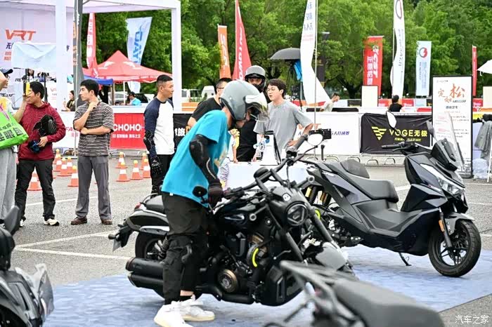 除了内场新款车型的展出以外,无极还在场外(NP1-1)带来了“控车大师”的赛事挑战。本次挑战依旧分为:原地定车、扶车与单手绕车、慢骑比赛和综合图形挑战四个单项。其实从车友的角度来说这或许是赢取奖金的一次机会,但是以品牌的角度来说这样的活动目的也是为了提升车友安全驾驶的习惯,出色稳定的控车能力在日常行驶中也能带来更安全的骑行保障。所以在这方面的意义个人认为远远大于活动和奖金本身。