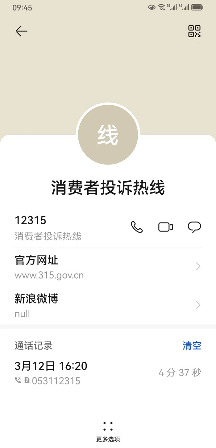 这期间,厂家400投诉过3次;3月12日,投诉到当地的12315,目前事情没用任何进展。投诉期间,店里一直没有人主动跟我联系过。