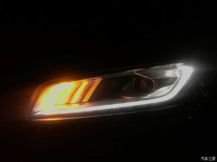 博瑞 GE 的前大灯造型将科技和美学结合,采用全LED光源,远近光共8颗,其中远光8颗,近光5颗;转向灯12颗;昼间行驶灯与位置灯共用16颗;单侧共计36颗,前大灯共计72颗。