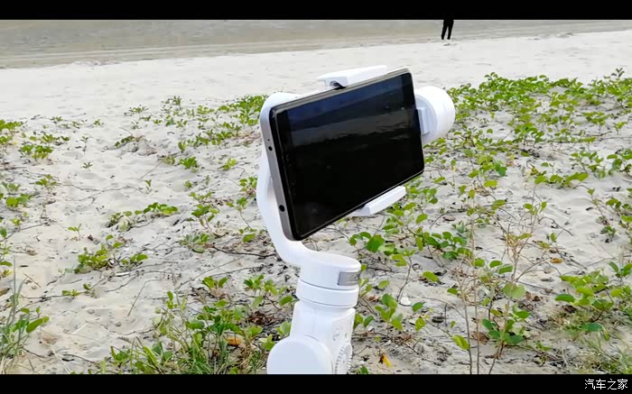 先试试PF模式,即航向跟随。手机拍摄画面在俯仰方向保持不变,水平方向通过旋转云台机身转动