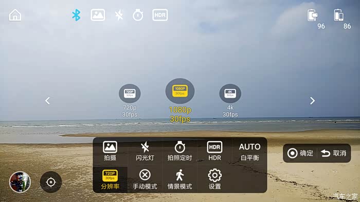 分辨率这里,有三个选择:720P、1080P、4K,码率都是常用的30fps,具体成像效果取决于手机性能