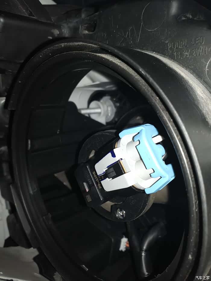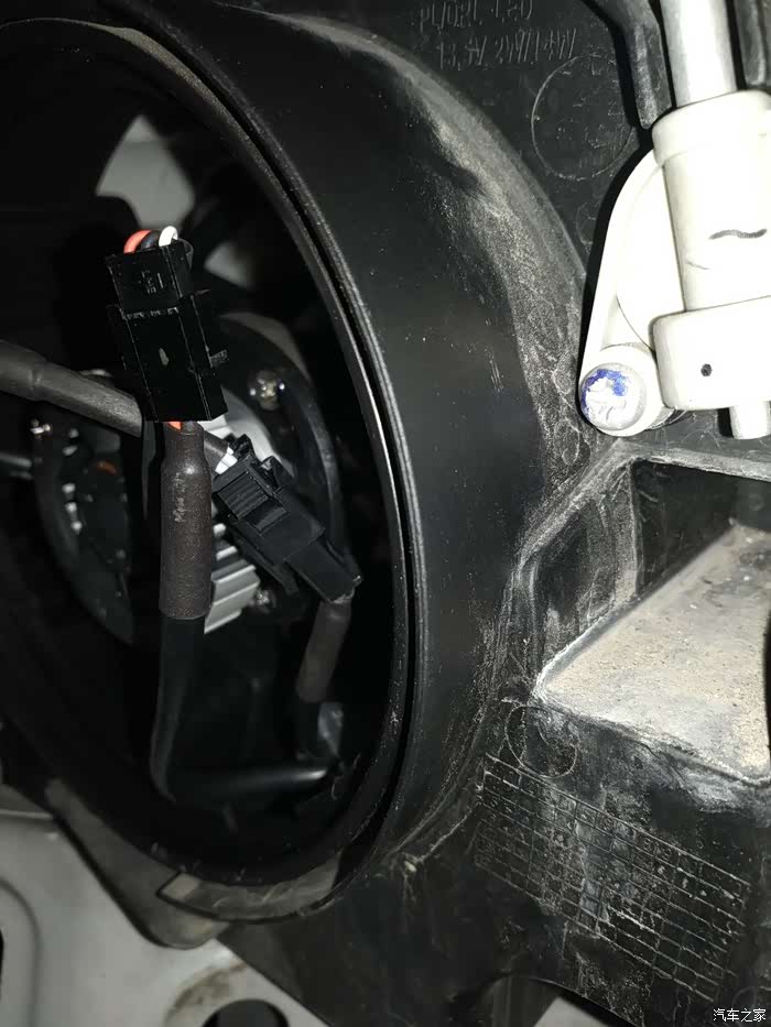 原车卤素灯,也是转一个角度,不是很紧,从灰色的那个卡子拔下来,我用的钥匙别着拔出来的