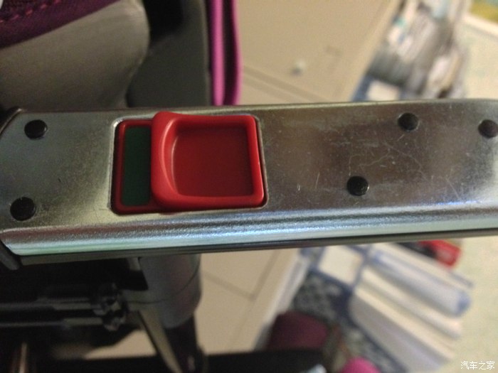 这个就是座椅的接口,要插到刚才的导向口里去。注意那个红色的标识,是没固定好的意思。