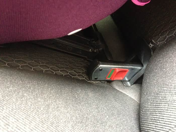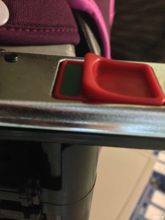 看到绿色的标识了吧,这个就是说已经固定好了,宝宝可以放心的坐了。这个一定要检查好,如果没有绿色标志弹出来一定要重新安全,不然座椅就无法保护宝宝的安全了,而且记得两面都要检查一下哦!切记切记。
