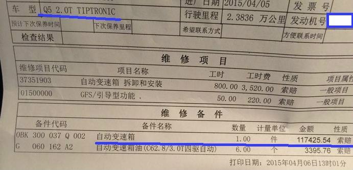 国产2.0T Q5的ZF 8AT零售价格: