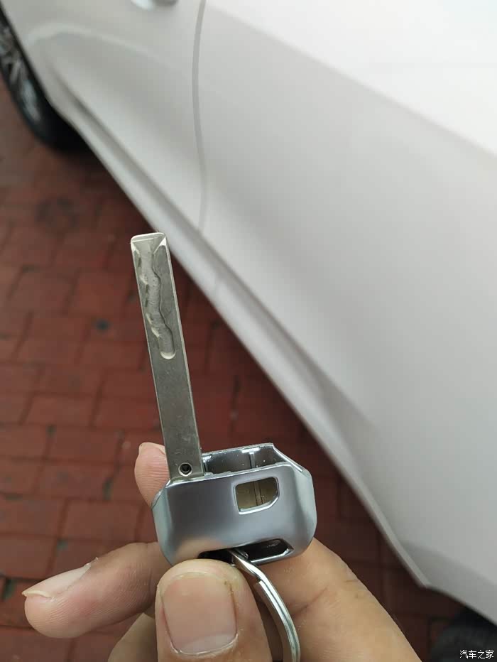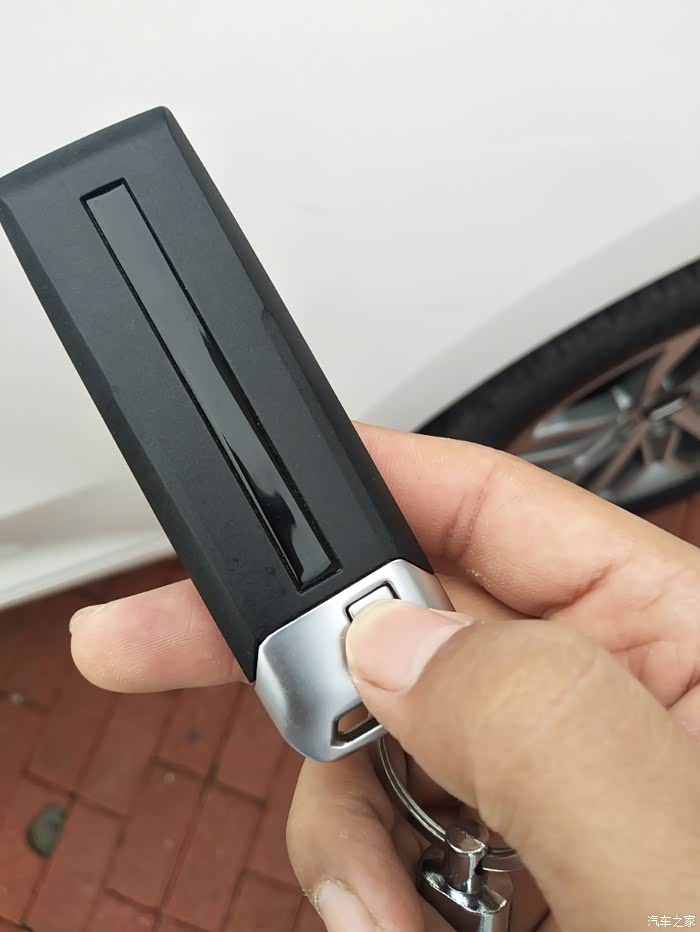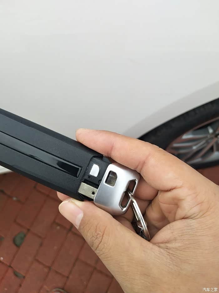 首先就是如果咱们的车钥匙没电没法打开车门了怎么办呢,咱们的车是有机械钥匙的,钥匙背面有一个按钮按住往外拔