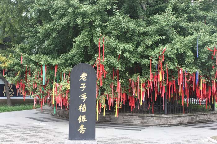 这棵银杏树只有几百年,说是老子手植显然很牵强,不过古树也是一种文化,那就姑妄信之吧。