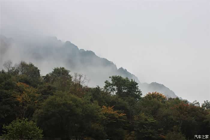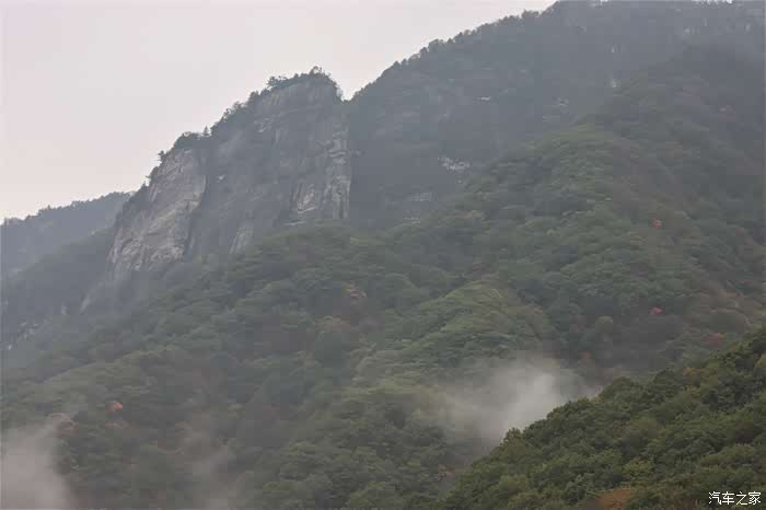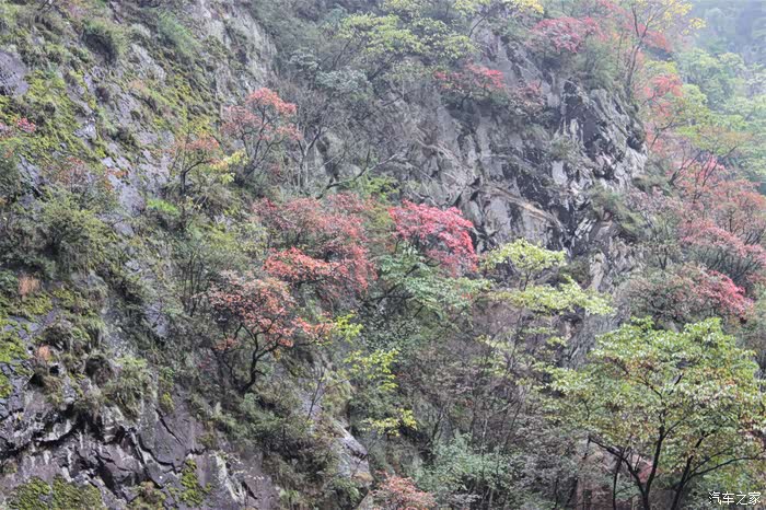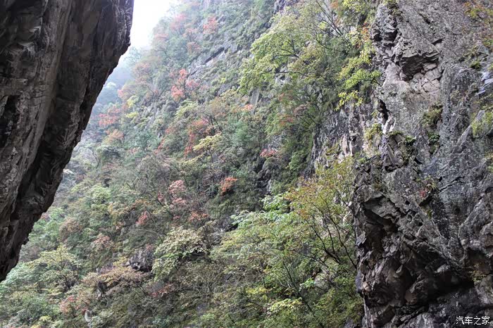 十月的秦岭还不是观赏彩林的最佳时期,崖壁上若隐若现的红叶或多或少给人一丝安慰。