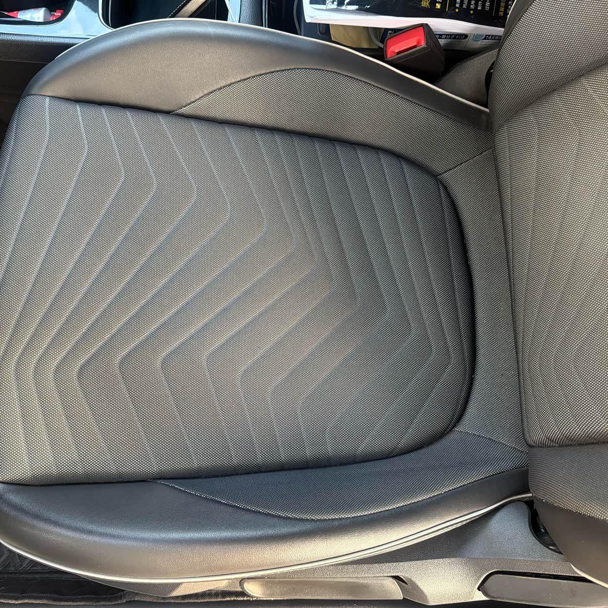 ID.3是紧凑级小车,车身长度仅4.26米,不过车内空间表现不错。坐进去后,头部不会顶到车顶,没有那种压抑感,坐姿和SUV有点像。座椅是织物和皮拼接的,实用性挺好,软硬适中,整体支撑很到位。开长途的时候,坐很久也不会觉得特别累,这和大众车一贯的风格相符。最让我满意的是前排扶手,开车时把手搭在上面,感觉特别舒服。