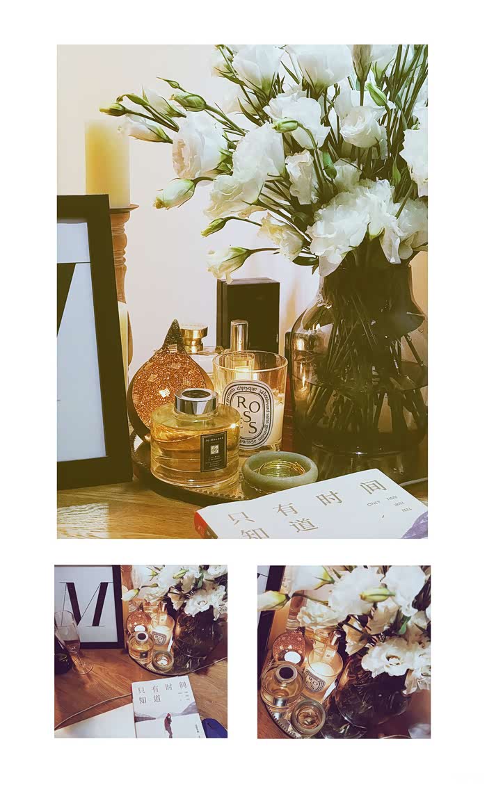 正如我刚开着车,耳边环绕着熟悉的电台,穿过城市的灯火阑珊,回到温暖的家里,洗了一个温暖的热水澡,此刻窝在我最爱的书桌前,手边花瓶里插着刚买的鲜花,点了喜欢的香氛,烛光一条一条闪烁在你余光里........