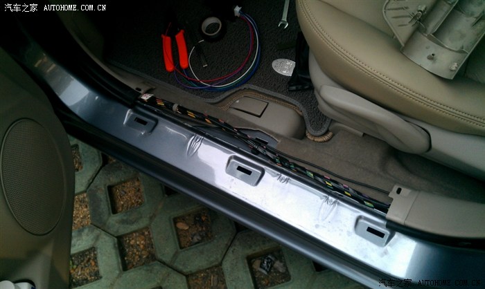 塑料迎宾踏板直接扳下来,6个卡扣位置,如下图所示。可以看到此工程是在真皮座椅安装完之后进行的。
