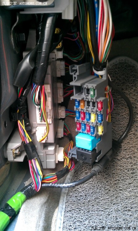 拿掉塑料盖板,路出了无数的电线和插满保险丝的保鲜盒和控制车门锁车门窗的行车舒适电脑