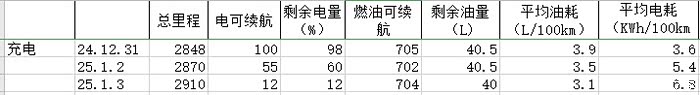 电耗表现:我是在星星充电站充的,最近2次只能充到98%就自动停止了,可行驶里程100km。以最近一次为例,充满电差不多开3趟就见底了,也就是从满电100km至可续航12km,即实际行驶62km表显行程减少88km,表显电耗实际达成率为70.45%。从能耗分析图看,中间都有用油情况,至续航剩15km左右时,应该是发动机启动智能用油了。