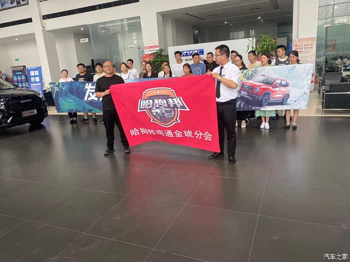 随后进行了哈狗帮南通金琥分会的授旗仪式,销售经理将会旗交于会长手上。