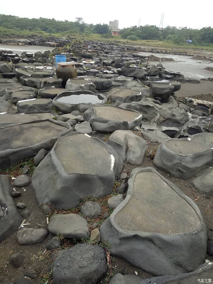 海水注入石头上自然晒干收集盐