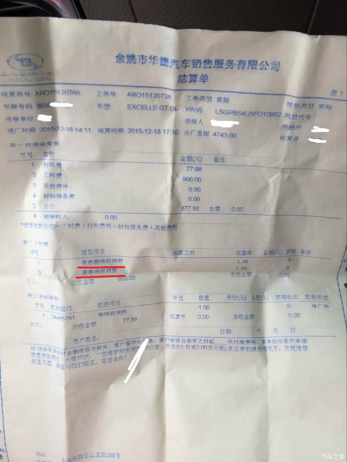 开了2个星期去4S复查一看,还是漏油,这次让4S出方案,4S提出来换发动机曲轴!!!