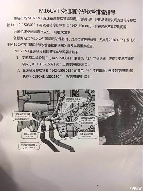 8.好了,现在问题来了,4S说按第一次的文件我的管没装反,400也说没反,但为何现在的配件对颜色是反的呢???难道以前的管没分,现在分了???就现在爆管这事吵那么大奇瑞就应该出来给个准确说法,但没有,这是我最失望的地方。