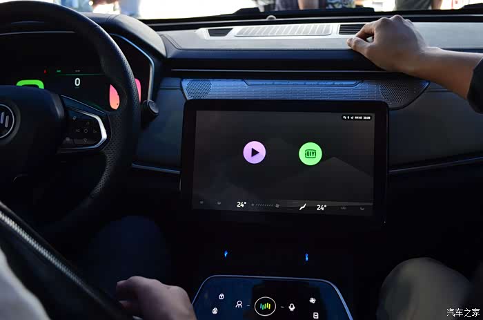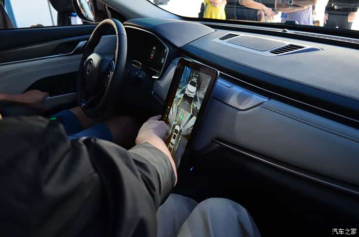 中控屏也可以进行旋转,转换按钮在右边(横屏状态下在顶部)。系统默认是竖屏,不是横屏,试了下,竖屏不会遮挡视线