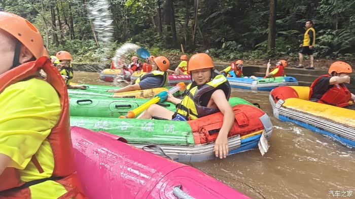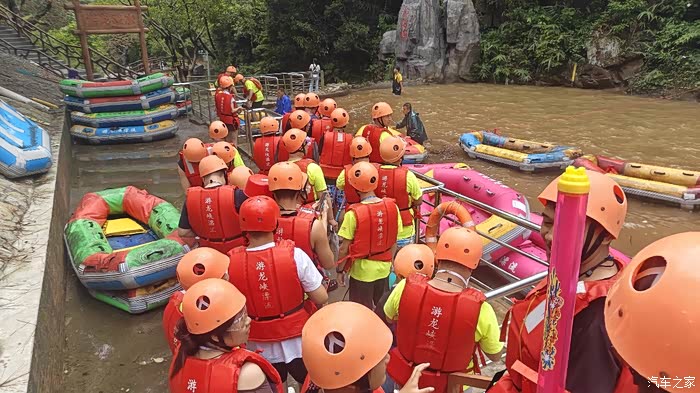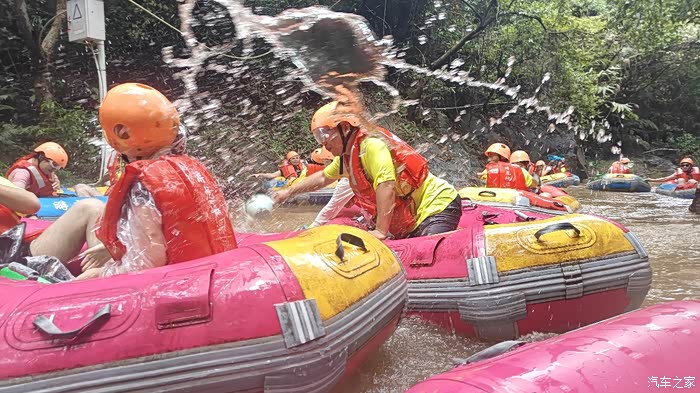 今天是一个开心的日子,因为终于迎来了咱们广东长安车友会的漂流活动,从半个月前报名开始心里就非常期待今天的到来,早上起床还下着狂风爆雨,出门前还是很担心今天景区会不会因为大风大雨而停止营业,路上虽然很期待,但心中又有些不安,经过一个多小时车程终于到达景区集合地点了,雨虽然还在下着,但车友会的管理人员还是坚持冐着大雨指挥停车,虽然下着雨大家都共同奔赴,而且今天参加活动的车型也非常多,有运动帅气的univ、uniK、逸动p、cs95、cs75p系列、cs55p、cs35p等,停好车后大雨竟然停了,大家的悬着的心终于可以方下了,同时也迎来了好消息,景区通知下午1点钟恢复漂流项目,大家都露出了喜悦的笑容,然后开始进入活动首个环节车主签到拍集体照留念,拍完照就是开始进入抽奖环节了,大家都抽到了心仪的礼品,每个车主都有份,然后大家抽奖吃饱喝足了就进入今天最期待的环节,那就是漂流咯,会长分发门票,大家都迫不及待的排队乘车上山开始漂流了,虽然雨后的水很黄,但是一点也不影响大家游玩的心情,大家在漂流过程中干起了水丈,你一瓢我一飘的,使得现场氛围非常热闹,能与来自五湖四海的车友们一起漂流不仅刺激也很开心,这样的活动非常不错。