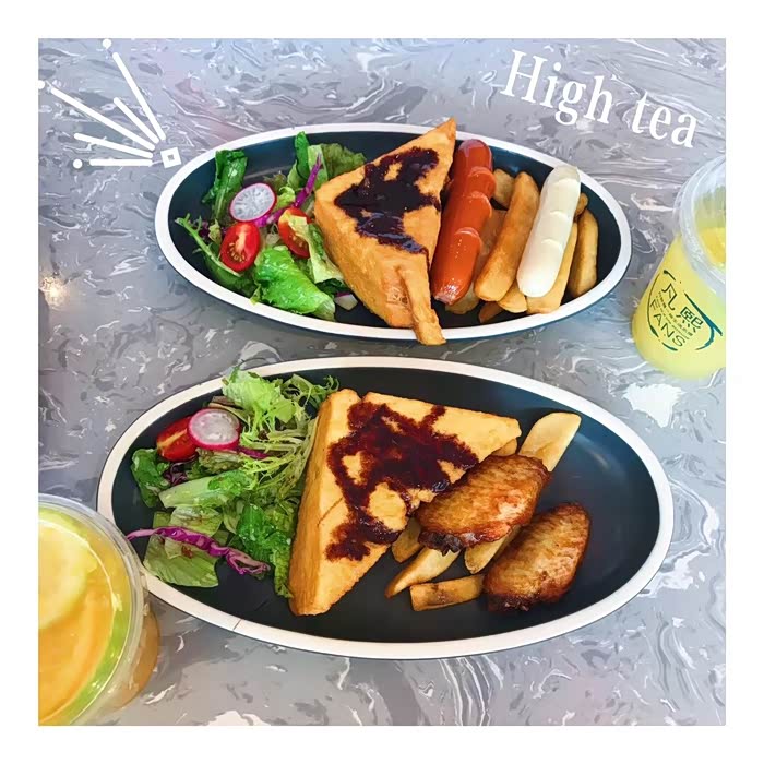我们点了两个下午茶套餐,一个是多士拼鸡翅另外一个是多士拼芝士肠