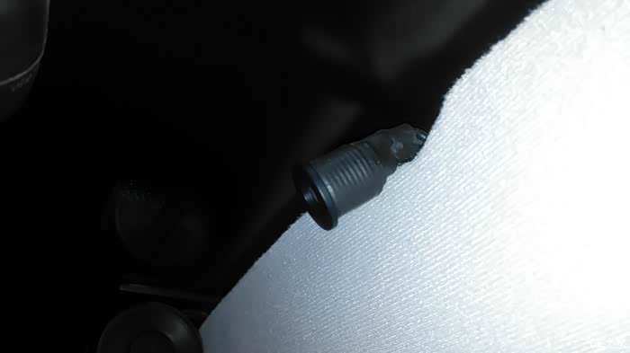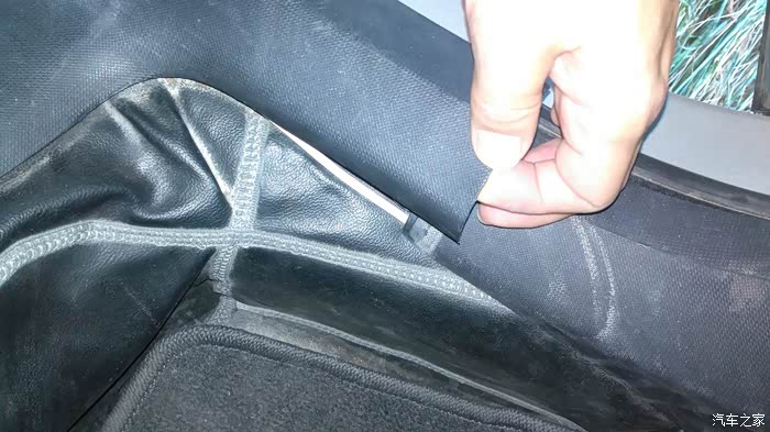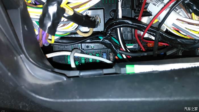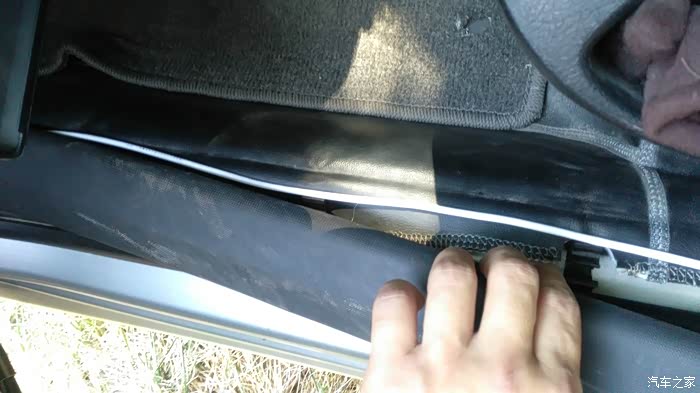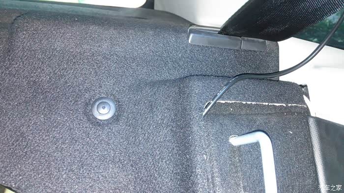 这是馈线和电源线从后排座位内饰板缝隙穿插的情况。