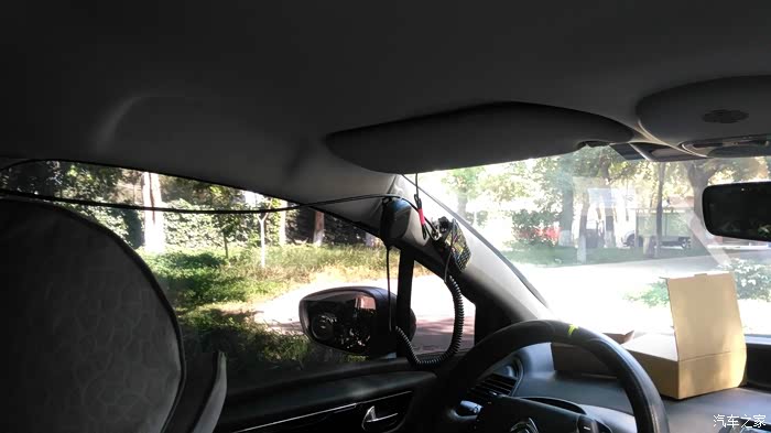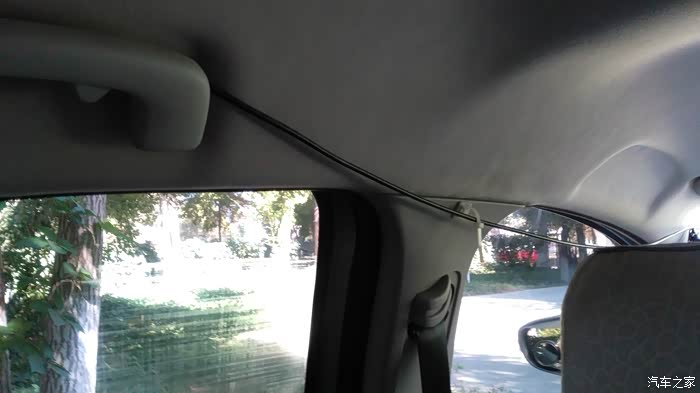 馈线从内顶边缘过左前窗,连上固定在A柱的手台,由于临时测试窗上沿并没有安装尼龙扎带卡子。