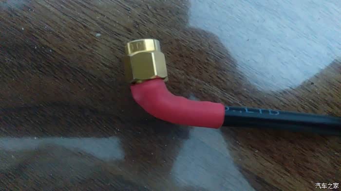 由于没有SMA直角弯头,临时将就了一下,线皮不能包裹屏蔽层容易受雨水侵蚀,后期用焊锡固形和热缩管封装了一下。