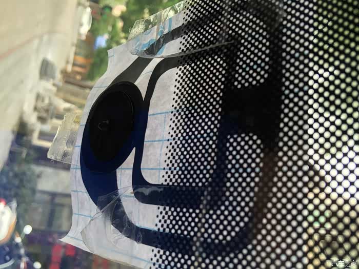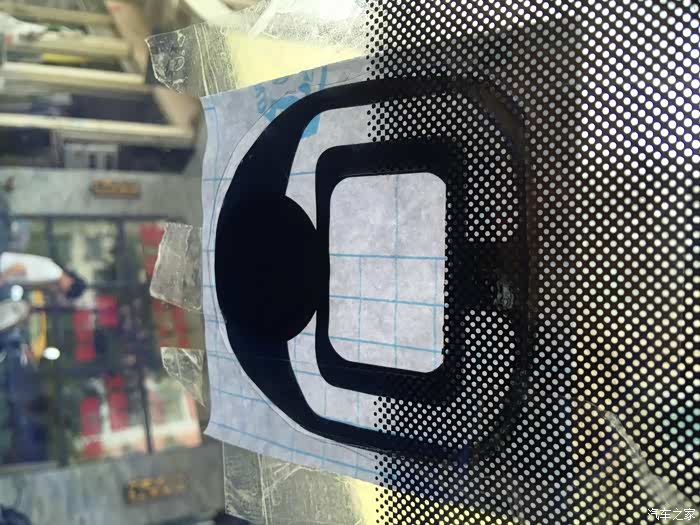 涂好玻璃胶,清洗干净金属边的余胶,用透明胶固定好,这透明胶我怕太粘,粘在玻璃不好清洗,我先在我大腿上粘了几下,,,,,撕掉的时候,那个痛啊。。。。粘好后视镜定位金属,要等玻璃胶干了才能继续施工,所以又等了一夜。。。