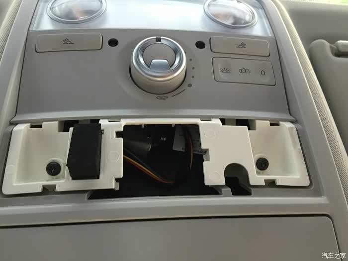 顶篷穿线位置的洞要靠自己开的,用界纸刀开个方形洞,然后用万能胶将黑盖板与顶篷粘在一起再穿线,我线还穿错了一次,解了重新来!
