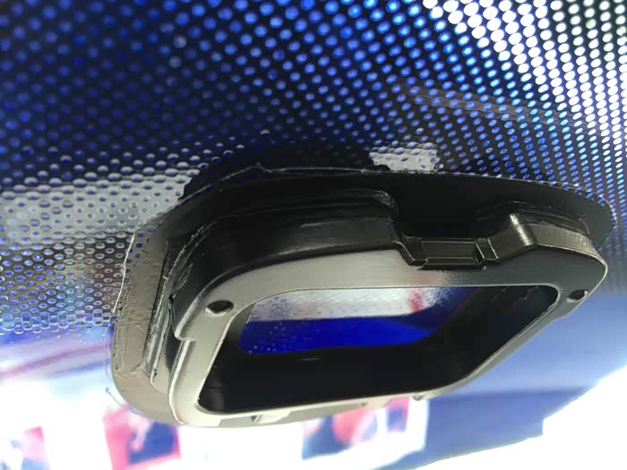 在外面定位好挡丑帖准备涂掉小黑点,,,,这个郁闷了一下,清洗剂只能作用在铁质的黑点,我直接在这里涂了一轮一点反应都没有,后来才发现原来小黑点也帖了防爆膜,用新的界纸刀将太阳膜根据外面的挡丑帖范围慢慢刮开了太阳膜,这个时候是中午,在车上,,,,热啊,,,太痛苦