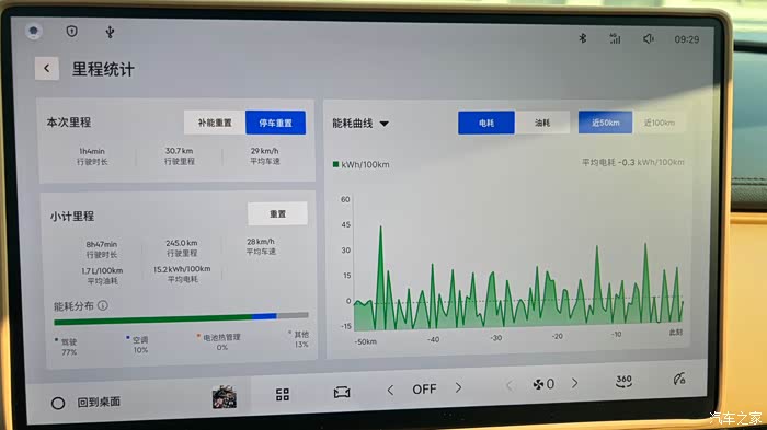 这车目前为止能被我诟病的就是这个续航了!简直没法看!有个车主实测大部分高速是满油满电870公里,达成率61左右。我目前跑了568公里,上下班来回是50公里左右,普通路面跟高架对对开。纯电标显120,动态表显101,实际60公里左右,差三公里左右到单位自动保电开启智能模式,电量显示10,达成率大概在60左右,平均20KWH差不多。纯油更没样子了,满油显示1300,加满之后就感觉掉表厉害,后面拍了两张开的高速多点的行程照。表显掉了110,实际跑了62,达成率56,平均6.8L。小计里程没有重置正好拍了下来,显示245公里,平均28KM/H,油耗1.7L/110KM,电耗15.2KWH/100KM,中间满电三次。反正我是跑不到1420KM,满油满电能让我750已经很给脸了,有些黄金右脚纯油跑3L/100KM不到我是真的不怎么信。但是如果按使用费用来跟油车对比吧我也还能接受,想省钱就勤快点充电,我的情况是一天一充。反正我觉得对于续航大家别报太大希望!但是还算省的。