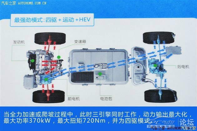 作为插电混动车目前已知唐有4种运行模式:如下4图
