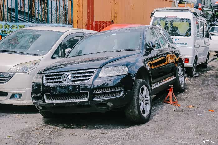 路过一家拆车厂,看到这辆途锐停得真是任性,