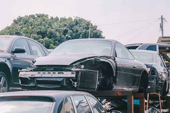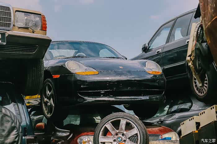 在一旁的拆车厂我还发现了保时捷第一代装配水冷发动机的911(代号996),
