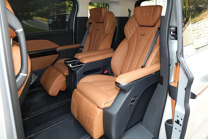HQ9内饰的灵魂在第二排,宽大的航空座椅,座椅加热通风,而且有热石按摩,妥妥的头等舱享受。触控屏几乎可以控制车上所有能动的东西,座椅一键放倒,腿托及各种功能调节等