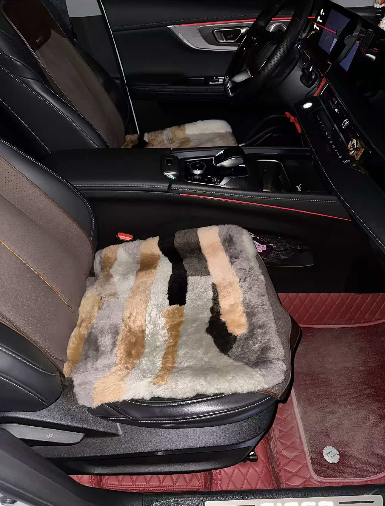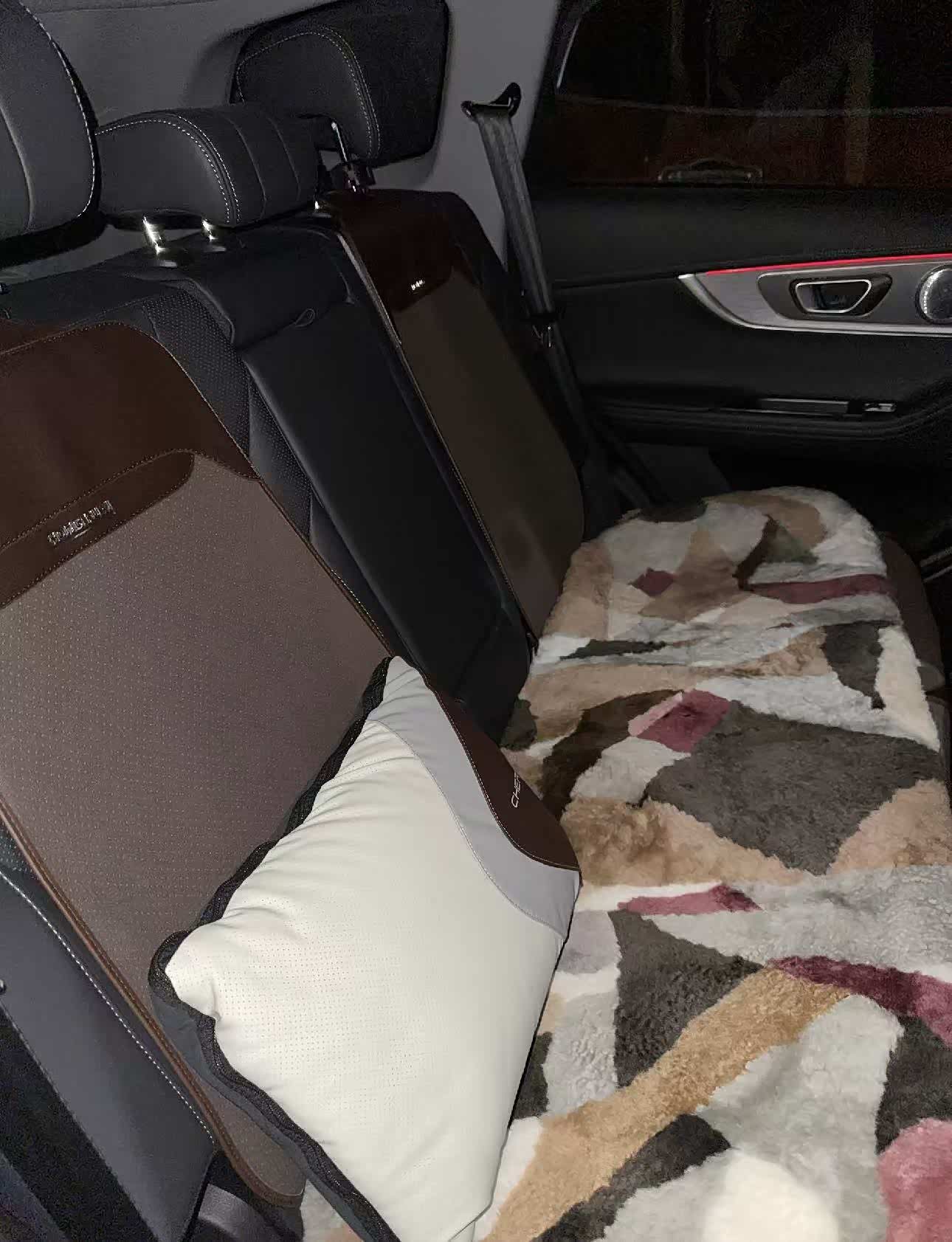 我的8Pro是中配版本,没有座椅加热功能,就咱这大冬天,上车是真冷,就算用远程启动预热后也是凉嗖嗖,显摆一下妻子给买的纯羊毛坐垫,特别的暖和,五颜六色的拼接版也是让冬季的车内多了一丝暖意。
