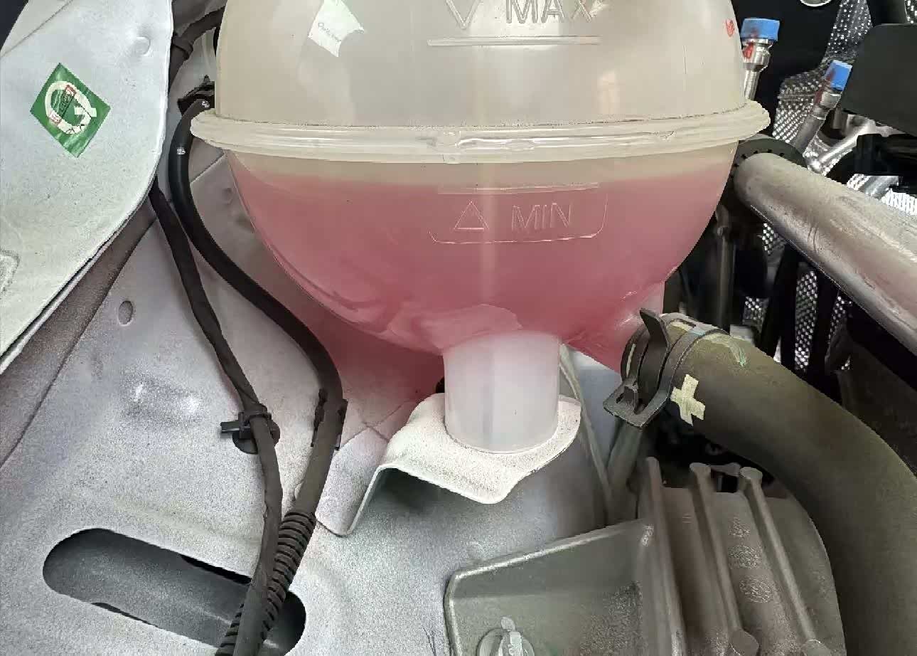 添加到上下线刻度的中间位置就好,把剩下的防冻液给我拿着,让我平时多加观察,看看是不是还有非正常的水位落下去,要是跑几个月半年下去一些就属于正常的消耗状态!防冻液一定要添加原厂的防冻液,不能随便添加其他品牌。
