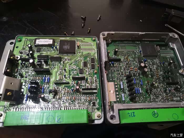 左边是电喷电脑 右边是增压电脑***的电脑挺先进的 集成了点火模块这些
