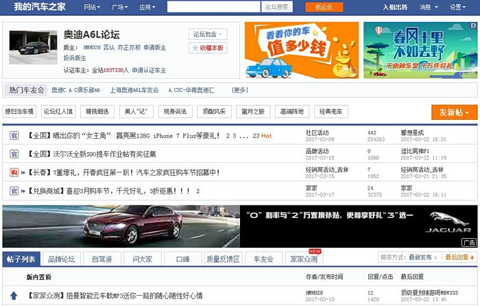 每个车系论坛,上部的分栏位置都有链接,并显示hot